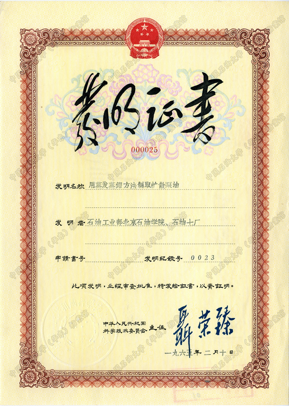 发明专利——用蒸发蒸馏方法制取扩散泵油