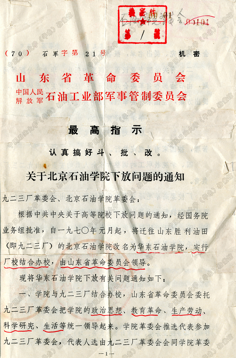 北京石油学院改名为华东石油学院的文件