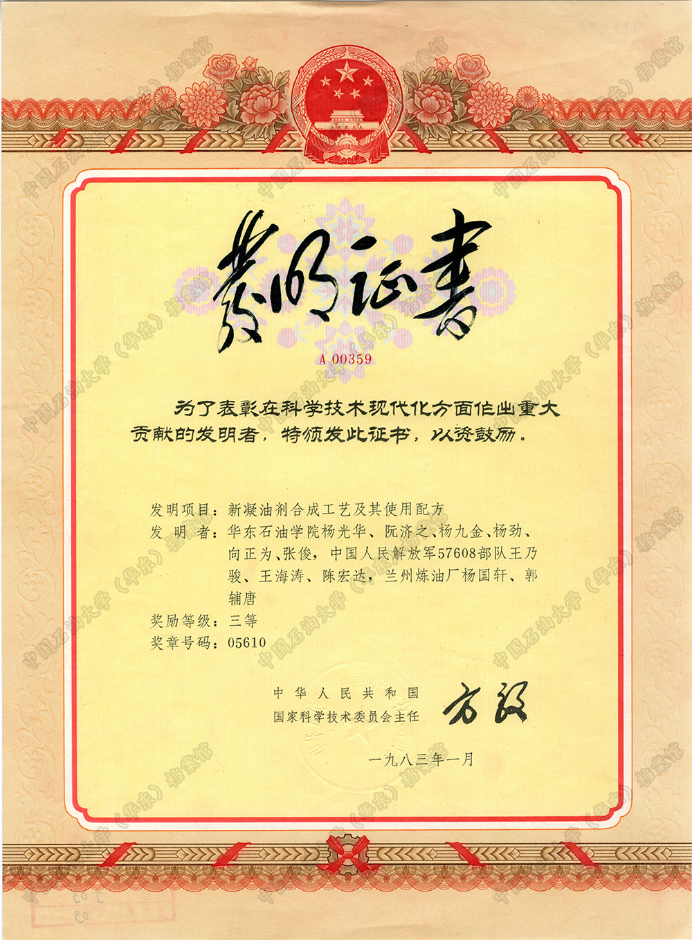 发明证书——新凝油剂合成工艺及其使用配方