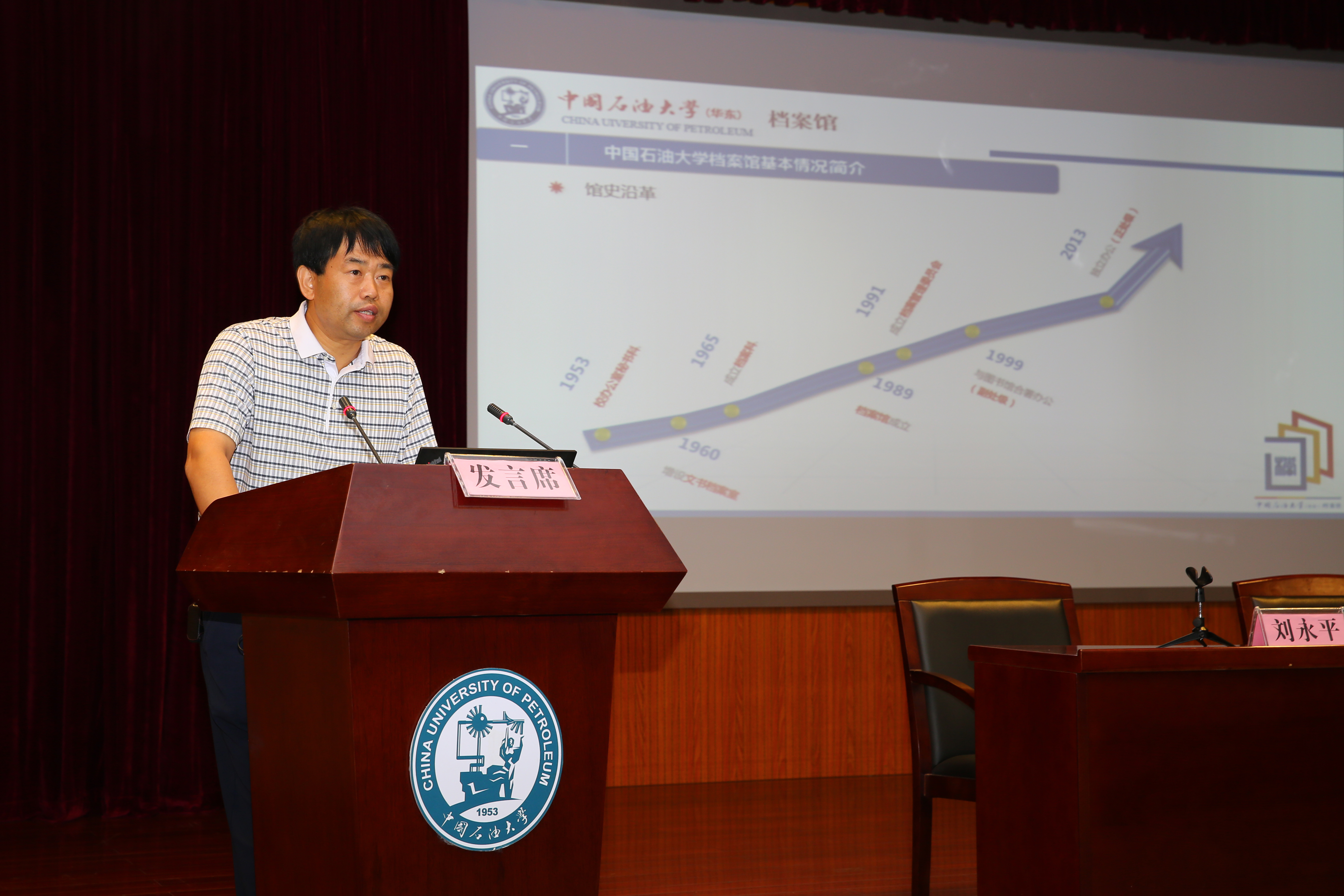 会上,山东省档案局法规经济处副处长臧成刚、山东省教育厅办公室副主任李苏等人充分肯定了山东高校档案管理专业委员会的工作,并对大会今后的工作提出了新的要求。会议报告了山东高校档案管理专业委员会过去一年的工作情况,调整了理事会成员,并详细解读了《山东省档案工作科学化管理规范测评办法》。我校档案馆馆长牛庆玮应大会邀请作了《存档留史尽职责 鉴往励今育桃李》的主题发言。