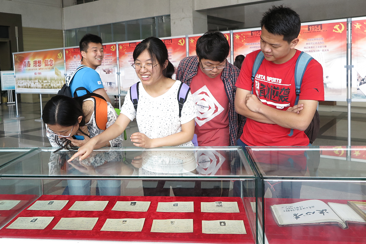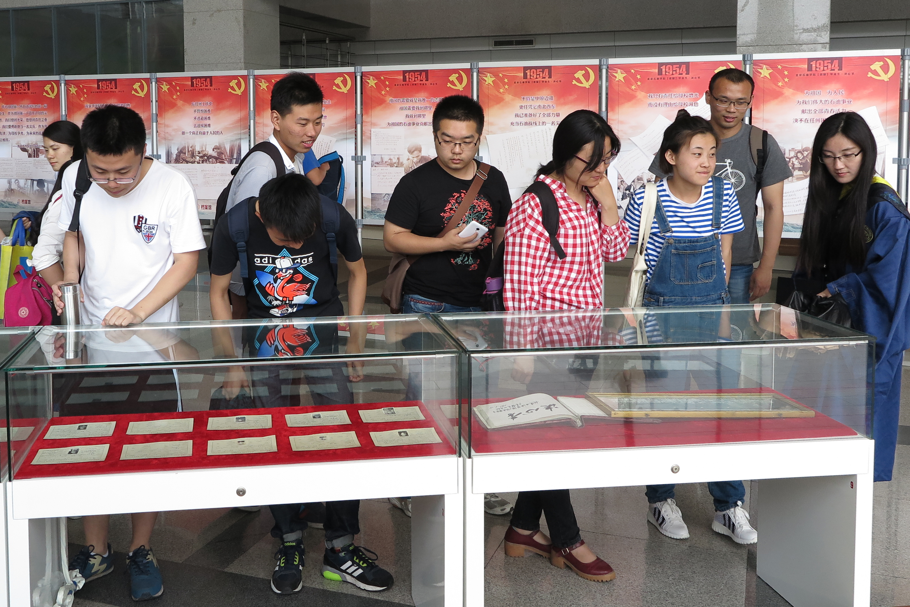 为了深入贯彻落实“两学一做”学习教育,在中国共产党成立95周年之际,6月13日上午,档案馆联合图书馆党委、组织部、宣传部、学生工作部,以学校珍藏的首届毕业生“决心书”为基础,以“学党章党规,学系列讲话,做合格党员”为目标,特推出《青春理想 信念——1954年北京石油学院第一届毕业生决心书图文实物展》,分别在图书馆、逸夫会议中心、讲堂群等地巡展。此次展览由23块展板、6个展柜组成,多角度展现了我校首届毕业生在火红年代里的青春、理想与信念,吸引了众多师生驻足观看。