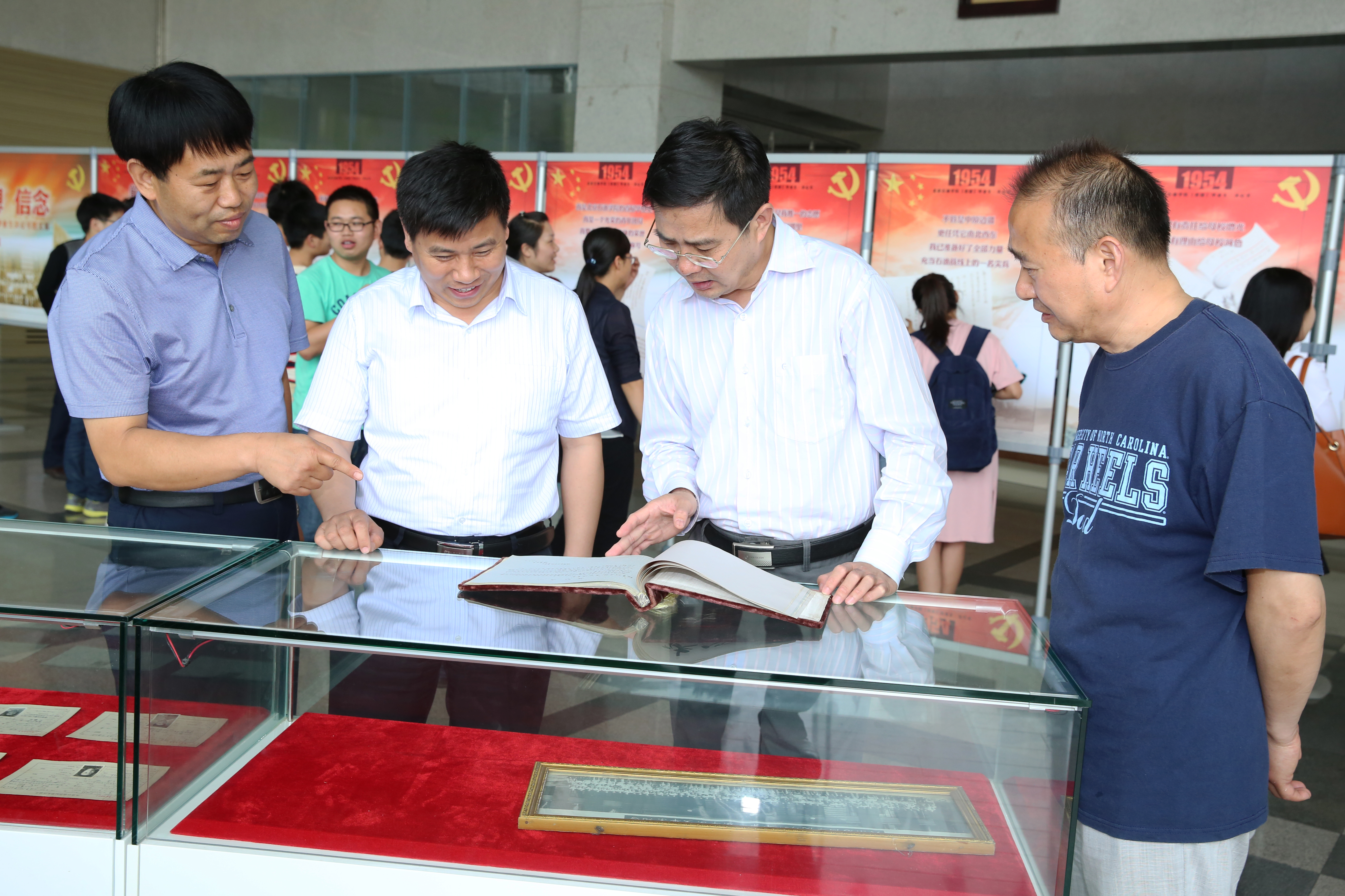 为了深入贯彻落实“两学一做”学习教育,在中国共产党成立95周年之际,6月13日上午,档案馆联合图书馆党委、组织部、宣传部、学生工作部,以学校珍藏的首届毕业生“决心书”为基础,以“学党章党规,学系列讲话,做合格党员”为目标,特推出《青春理想 信念——1954年北京石油学院第一届毕业生决心书图文实物展》,分别在图书馆、逸夫会议中心、讲堂群等地巡展。6月14日下午,学校党委副书记、纪委书记杨茂椿,副校长王瑞和,图书馆、组织部、宣传部、学生工作部、化学工程学院的领导和广大师生一同观看了展览。