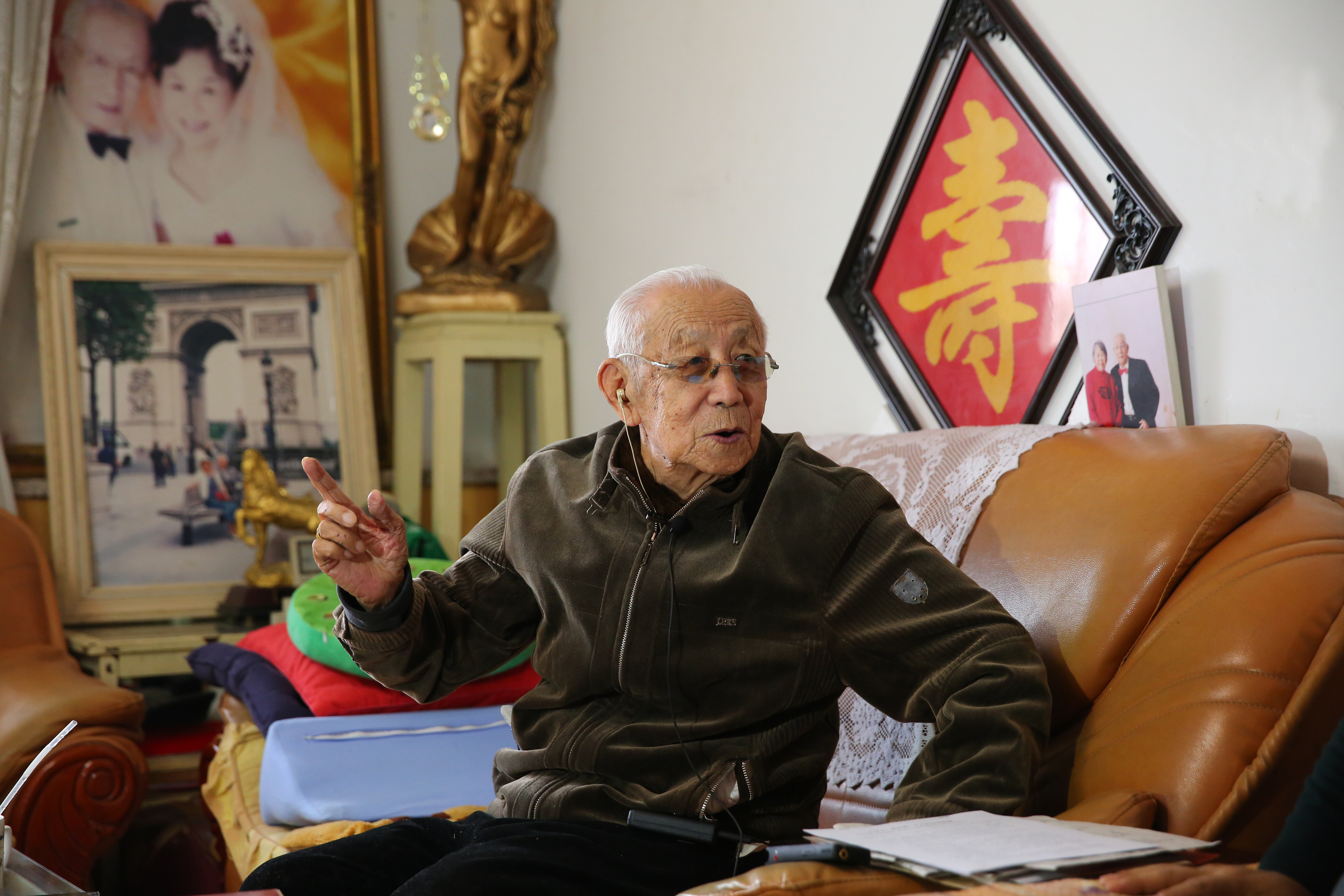 步履蹒跚的王革老师向工作人员展示了自己参加开国大典的图文资料,详细介绍了当时见证新中国成立的恢宏场面,并讲述了自己参加革命的经历、之后与家人分别22年的遭遇,以及来到华东石油学院后为学校的经济法学专业所做的贡献等,几十年矢志不渝认真工作的精神引起采访人员由衷的敬佩。