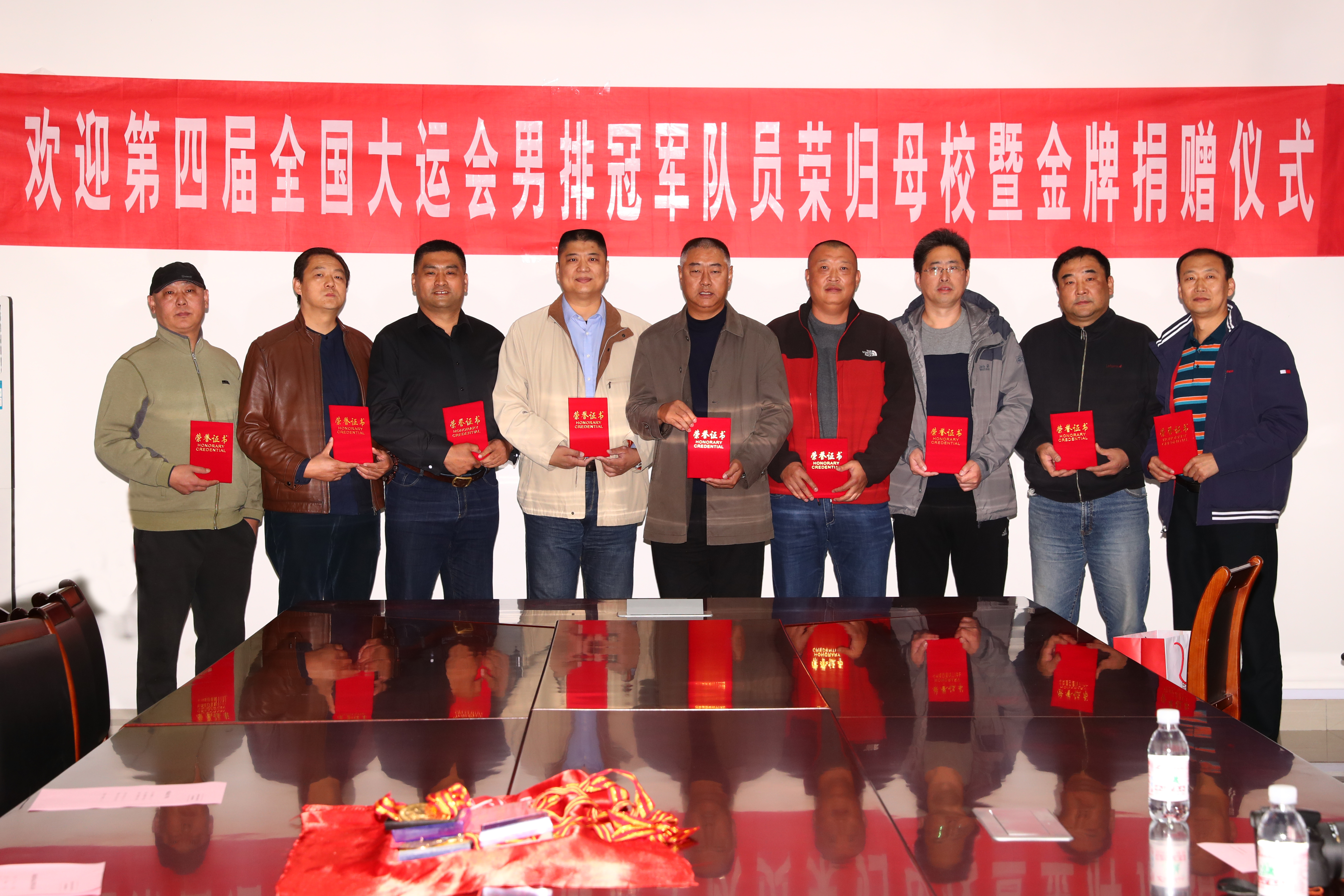为了回馈母校的培育之恩,9名校友向学校捐赠了各自珍藏的大运会金牌和证书。这是他们作为男子排球队员,在1992年第四届全国大学生运动会上获得的金牌,运动员们把各自的奖牌捐赠给母校,以表达他们不忘师恩、眷恋母校的深情。