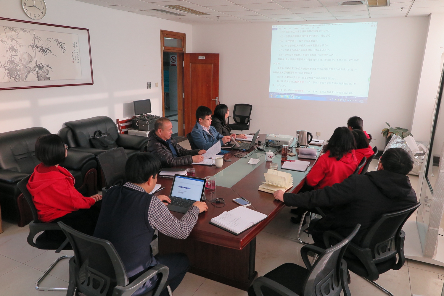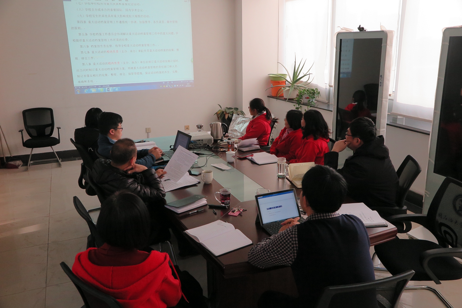 档案馆工作人员研讨档案工作制度建设