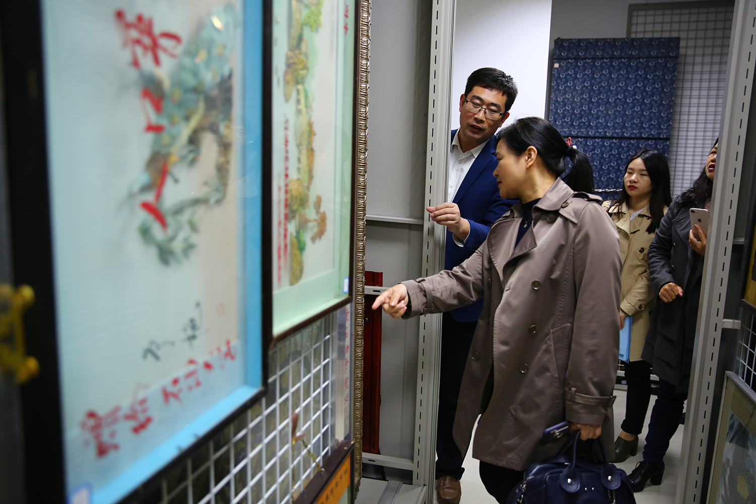 座谈后,深圳大学一行参观了我校档案库房及艺术品库房,对我校档案库房的馆藏环境及珍贵字画的保管装具等进行了实地调研。