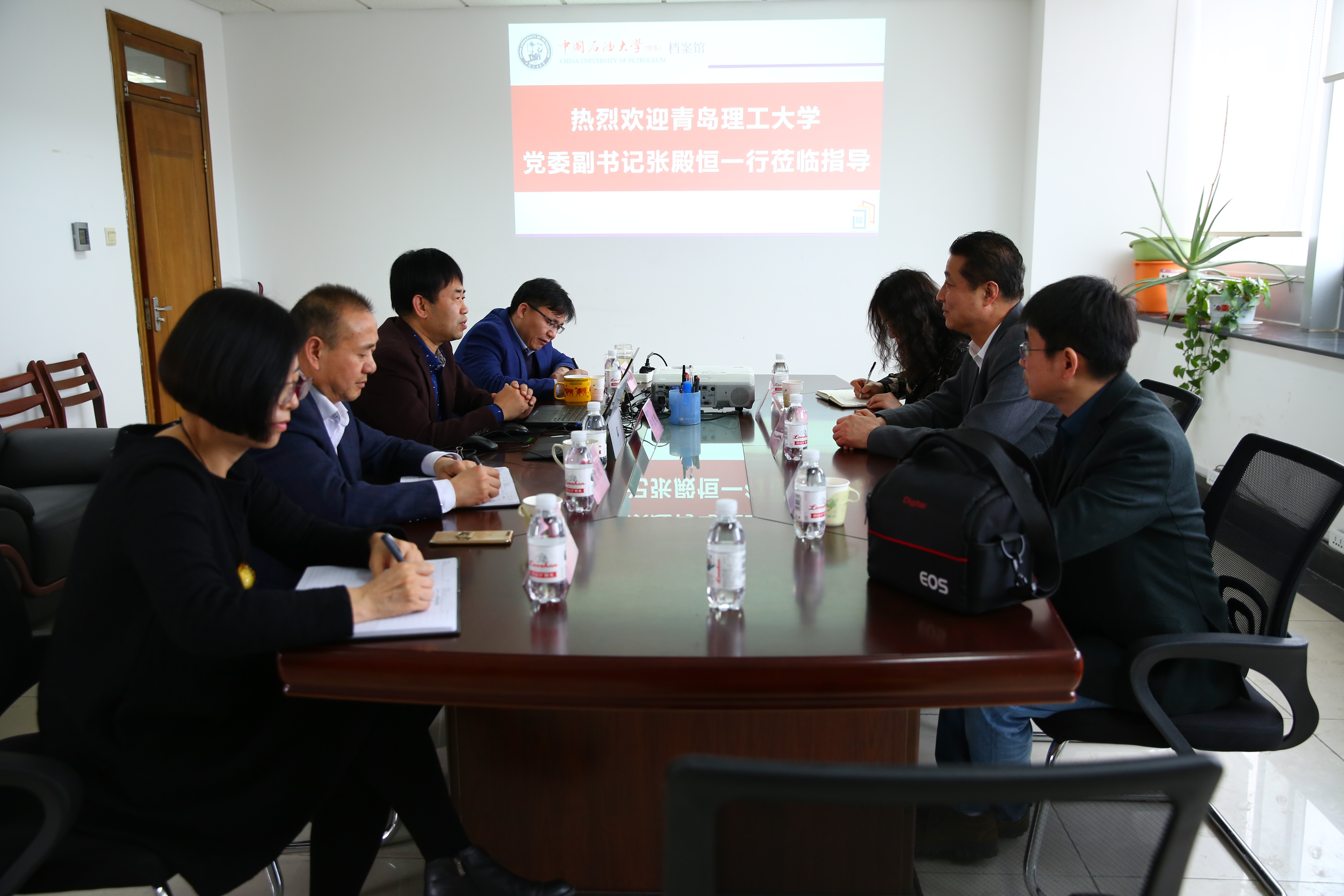 4月3日下午,青岛理工大学党委副书记张殿恒及档案馆馆长赖敬延、科长陈通一行3人到我校档案馆调研,双方就档案管理体系建设、资源体系建设、信息化建设和实物档案收集等有关问题展开座谈。