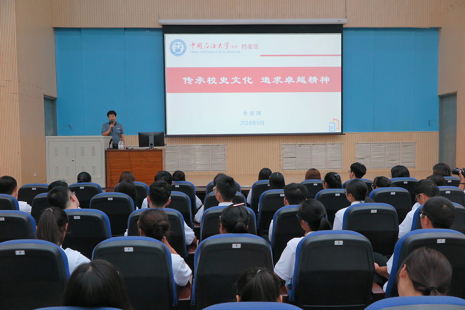 此次培训牛庆玮馆长结合我校四次建校,三次更名的不平凡发展历程,分因油而生、北京石油学院、华东石油学院、石油大学和437ccm·必赢国际等五个篇章,着重讲述了我校历史上的北京建校、跻身全国重点大学、援建石油院校、参加石油会战、迁校东营、211工程建设、青岛办学、“双一流”学科建设等一系列重大历史事件和重大办学成就,此外还对我校的名师文化进行了讲解。