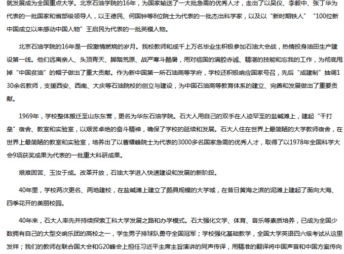 四、提供原始档案资料。发挥档案的原始凭证价值,为刘珂书记主持词提供原始档案支撑材料,为郝芳校长主报告《传承石大精神守正出新 争创一流》提供翔实的档案数据统计,为学校形象宣传片提供修改意见与建议,为学校六十五周年成果展提供相关图文资料等等。同时,为学校各个学院院史文化建设,特别是学院文化墙建设,提供大量珍贵历史资料和图片,推进学校文化宣传与发展。