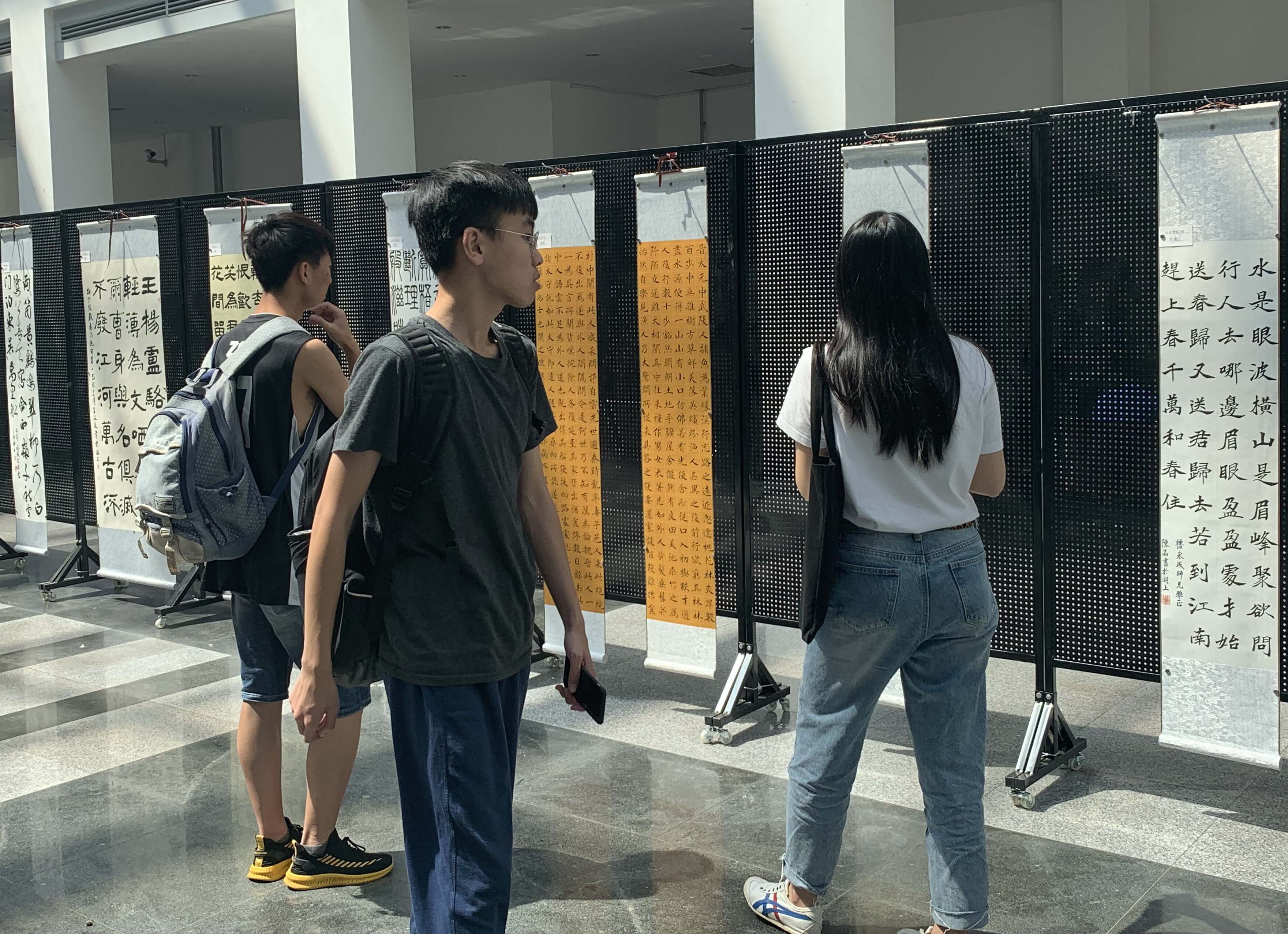 此次展览共有17位书家的60余幅书法作品参展,作品涉及金文大小篆、行草、楷书等多种书法形式,形象立体地展示出书法艺术的魅力。展示的书法作品主要由我校石油工程学院2019届毕业生曹永成提供,在毕业季来临之际曹永成以书法艺术的形式感激母校多年培育之恩,并携中国美术学院等16所艺术院校的书家以学院派的传统书风为学校献礼。