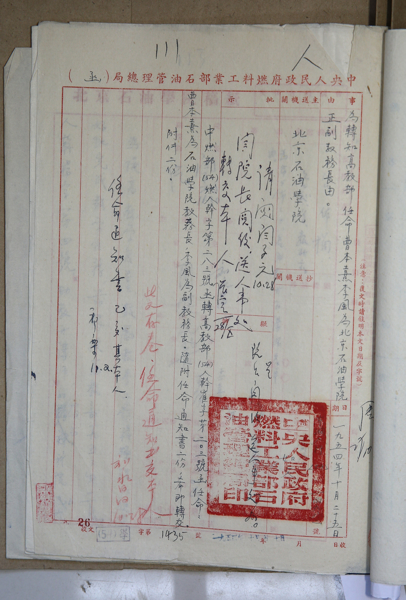 1954年10月25日,燃料工业部石油管理局任命曹本熹为教务长。