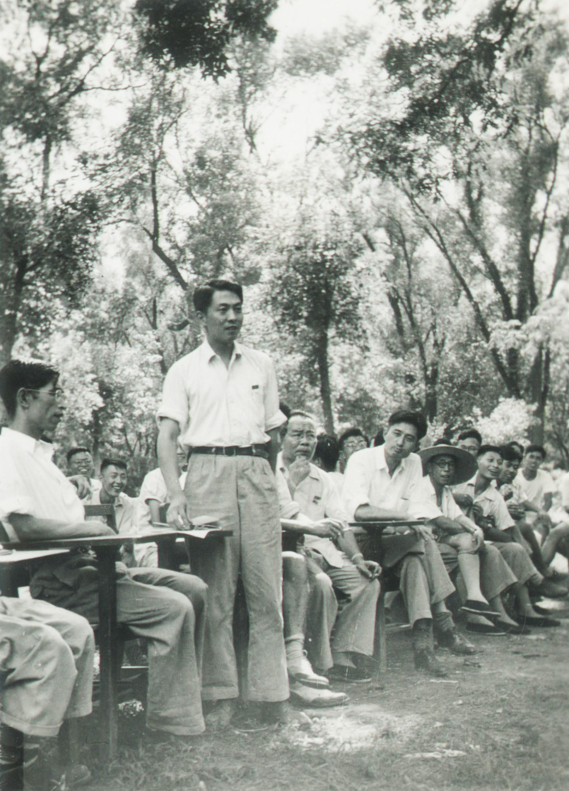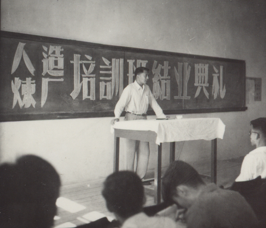 1959年6月3日,曹本熹在人造炼厂培训班结业典礼上讲话。