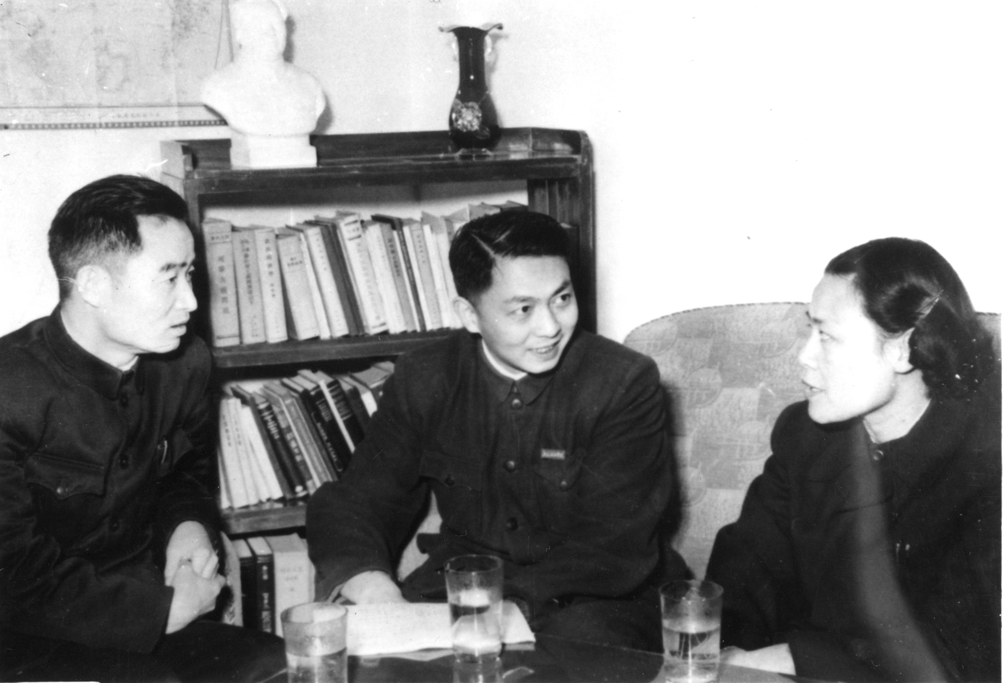 1961年9月13日,校领导贾皞(左)、曹本熹(中)、李风(右)在研究教学工作