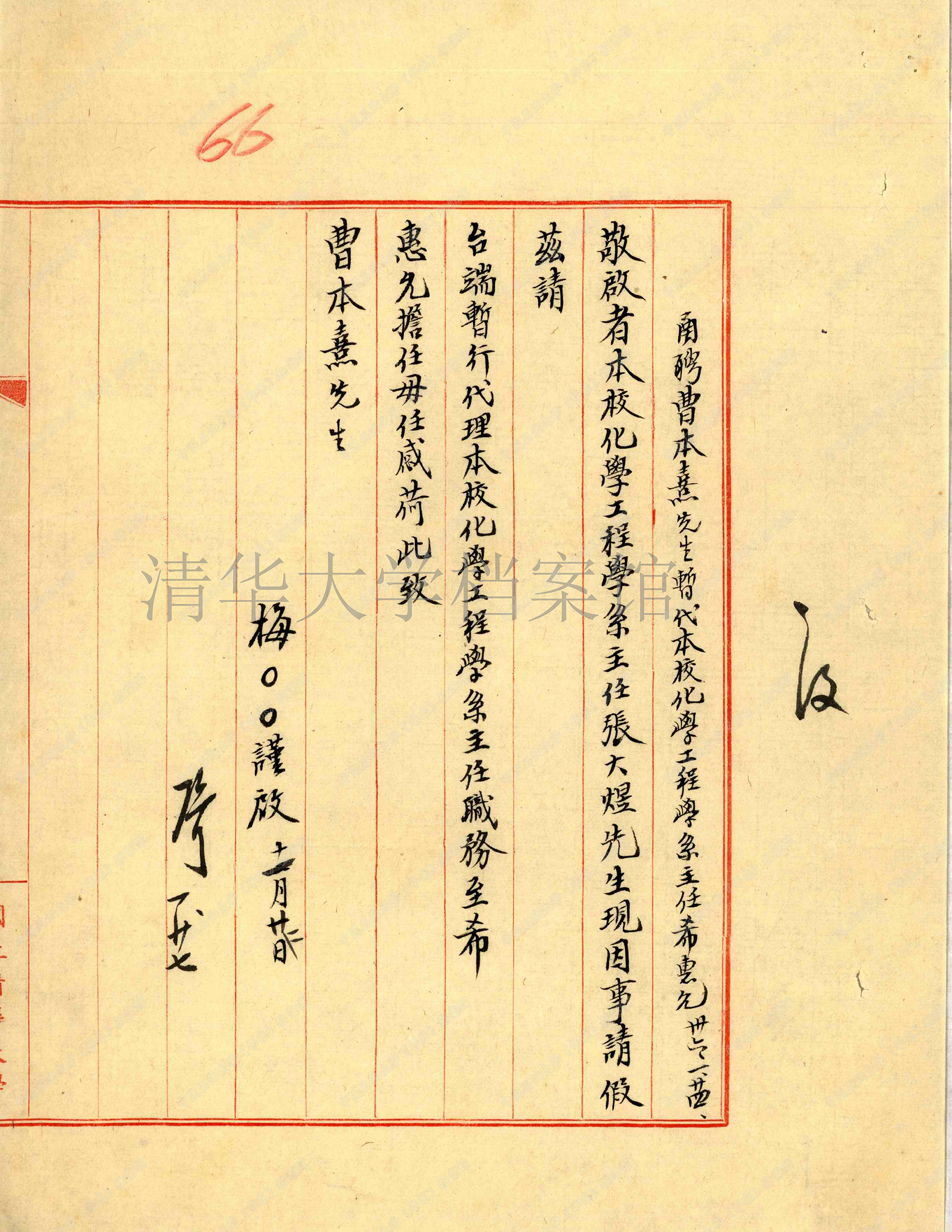 1947年1月27日,校长梅贻琦任命曹本熹为清华大学化学工程系代主任。