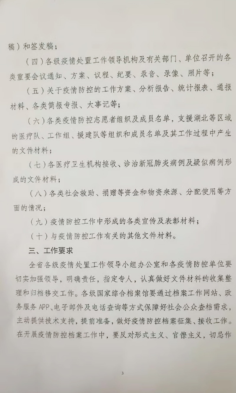 (九)其他与新冠肺炎疫情防控工作有关的具有保存价值的资料。