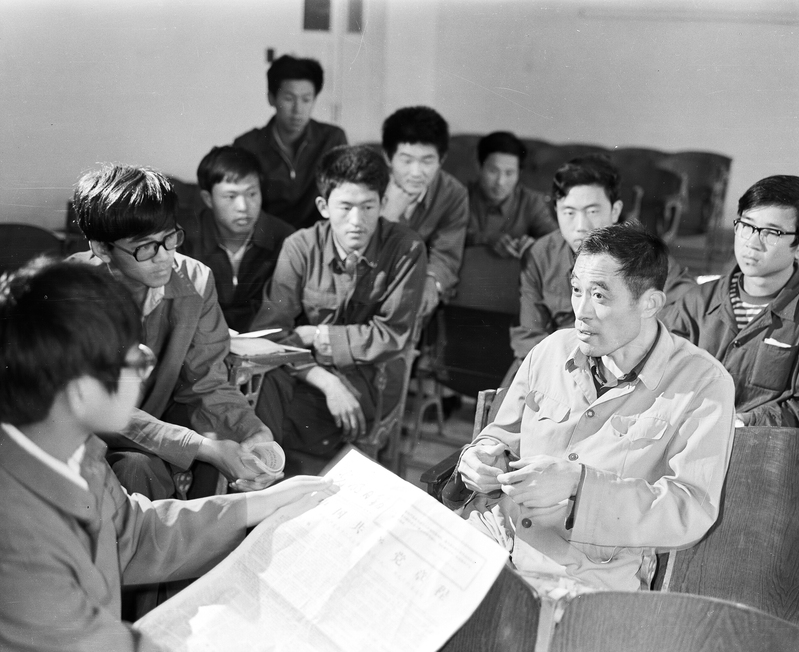 在一次《校史文化》课上,楼艰炯老师发现了一张时铭显老师和纪效田老师为一群学生上党课的场景,于是她便向纪效田老师请教。纪老师看到照片激动不已,他娓娓道来这张照片背后的故事:“这张照片拍摄于1982年中国共产党第十二次全国代表大会之后,我作为辅导员组织炼制系80级入党积极分子党课学习小组开展的一次党课活动,邀请党的十二大代表——机械系副教授时铭显向炼制系入党积极分子传达党的第十二次全国代表大会的会议情况和大会精神。画面中的人分别是时铭显、纪效田、周海成、季冬夏、雷春海、郭绪强、杜穆、魏飞、李国梁、刘显法等,课上我们重温入党誓词,共同学习《共产党章程》。当时,炼制系80级学生党员走在全校学生工作的前列,发展的学生党员最多。照片中一共有10人,后来有1位成长为中国工程院院士(时铭显),2位成为外交官(周海成、刘显法),1位成为副省级领导(李国梁),1位成为校领导(纪效田),2位成为博士生导师(郭绪强、魏飞)……”