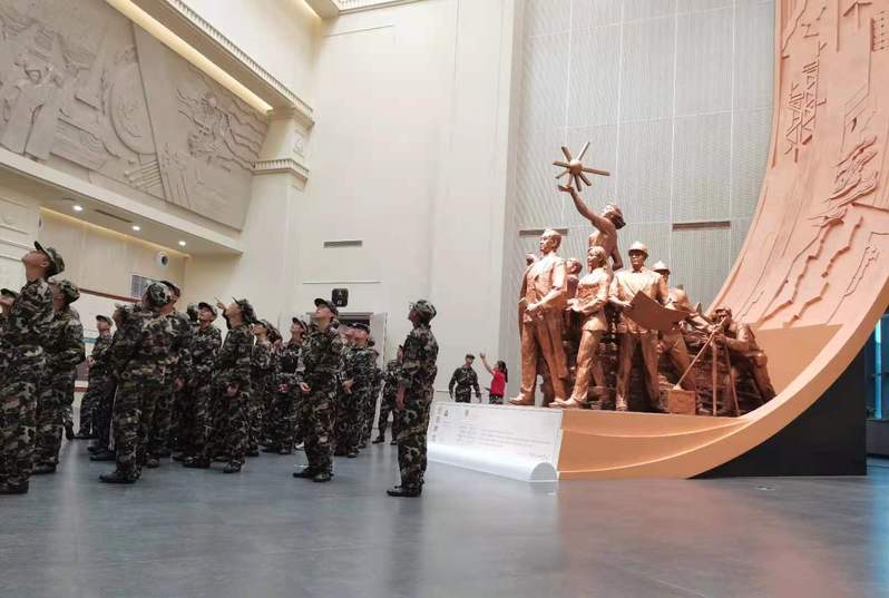 军训师生在讲解员的引导下依次参观了校史馆的前厅、序厅、序章、编年体展区、专题展区、愿景厅、艺术馆等,通过了解学校在国家急需石油时应运而生,对其他石油高校的成建制援建,同学们深刻领会到学校作为石油高等教育摇篮的使命担当,以及学校六十八年来与共和国发展共命运、与祖国石油工业同呼吸、与石油高等教育共奋进的光辉历程。