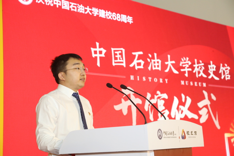 李阳作为华东石油学院时期的校友代表在开馆仪式上发言
