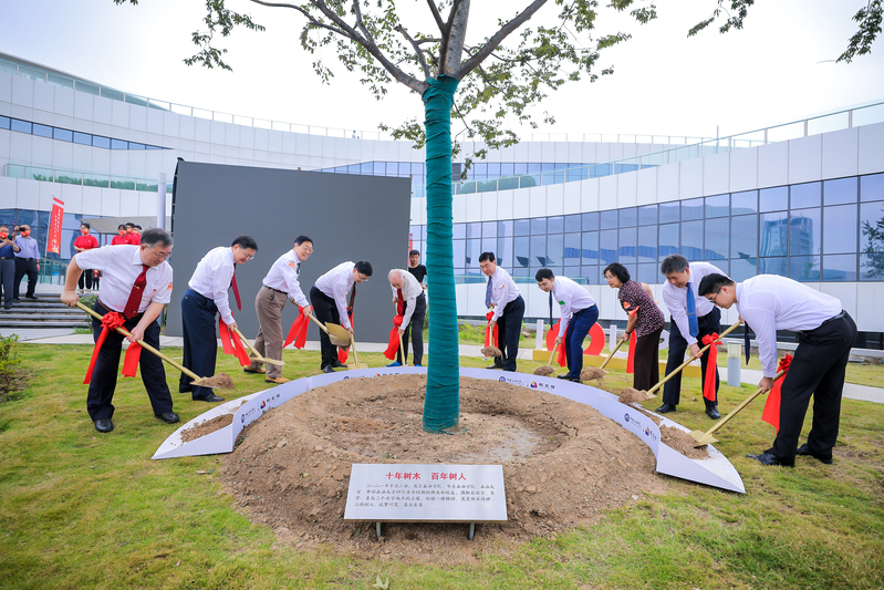 校领导,四个时期的校友、老领导、师生代表合育一棵树