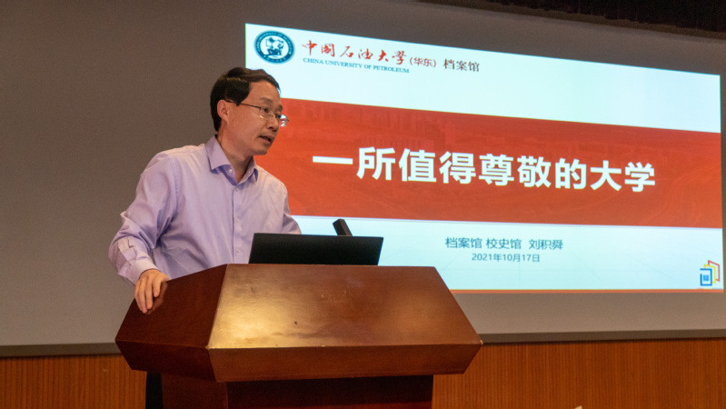 “石大,为新中国的需要而生,为祖国培育石油人才而生。”在讲座中,刘积舜介绍了学校建校68年来在北京荒郊、东营盐碱滩、青岛唐岛湾泥滩、古镇口荒滩四次创业的艰辛历程。他指出,石大是一所擅于创造奇迹的学校,从北京著名的“八大学院”之一,到黄河入海口的璀璨明珠,再到唐岛湾畔与古镇口区蓬勃发展的“石大速度”,学校始终与国家的发展与社会的需求同呼吸、共命运。