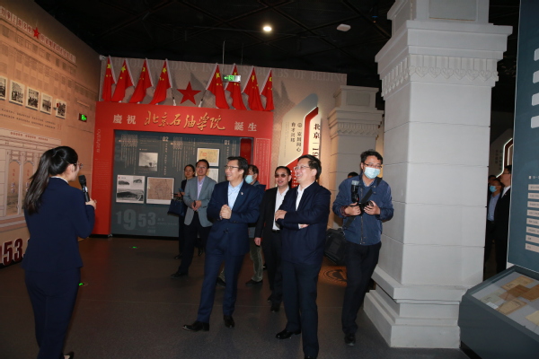 中国海洋石油集团有限公司办公室有关同志,437ccm·必赢国际(华东)党委办公室、校长办公室,学生就业指导中心,研究生院,发展规划处,教务处,科技处,人事处,合作发展处,教育发展中心负责同志陪同参观了校史馆。