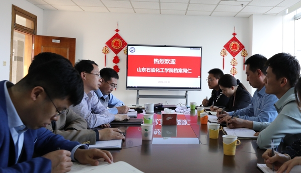 10月27日,山东石油化工学院档案馆馆长章志军一行来校调研档案工作规范化管理、档案工作数字信息化建设和校史馆建设等工作。我校档案馆馆长刘积舜就我校档案和校史工作开展情况及亮点工作进行了分享交流。