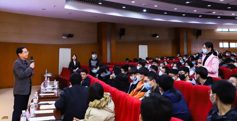 “你第一次听说石油大学是什么时候”,“请用一句话形容石油大学”,期间,刘积舜以提问的形式与同学们积极互动,了解大家对于石油大学的认识。通过列举闫子元、王启民、王德民、秦文贵等优秀石大人的事迹,激励学生深刻领悟“家国同心,艰苦奋斗,惟真惟实,追求卓越”的石大精神。在讲解石大精神的同时,刘积舜着眼于现实,总览石大发展线程,展望石大的蓝色未来。刘积舜对在场大学生提出“大学生应以史为鉴,开创未来,走好大学之路”的要求。