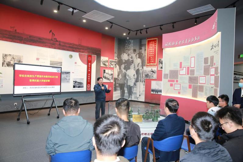 举办“红色校史我来讲述”系列活动拓展校史馆思政育人、文化育人、精神育人的功能。通过“从周恩来总理捐赠的机床到大国重器”、“中国共产党人精神谱系中的石大荣光”、“书信里的家国情怀”、“决心书里的石大担当”等主题党团日活动,组织师生深入讨论,谈感想、谈体会,促进党史学习教育融入内心、融入思想,使青年学子从红色校史中汲取奋进力量。