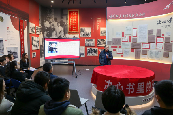 校史馆刘洋讲解决心书撰写背景 胡雨昕摄
