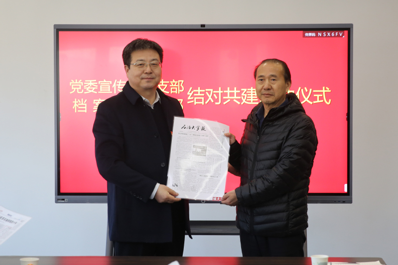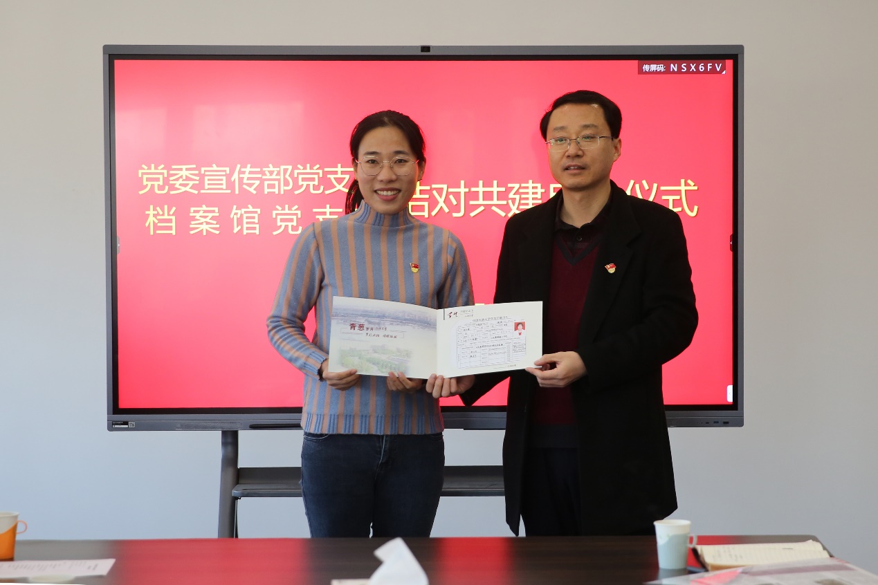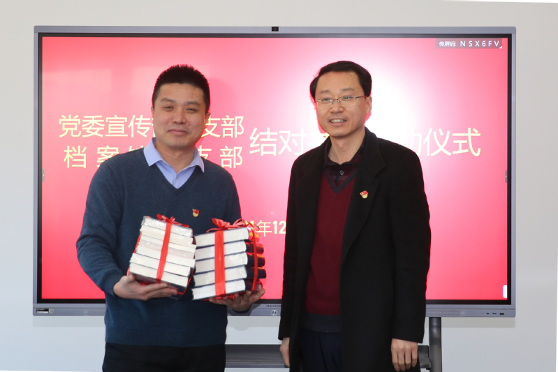 12月17日,党委宣传部党支部与档案馆党支部在校史馆开展结对共建启动仪式。仪式由档案馆副馆长兼校史馆馆长、档案馆党支部书记靳国栋主持,党委宣传部部长、宣传部党支部书记马国顺,档案馆馆长刘积舜,两个党支部党员参加仪式。