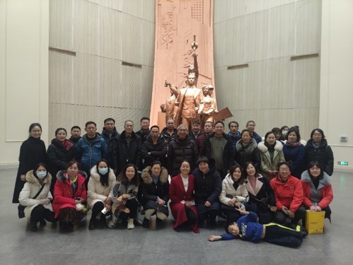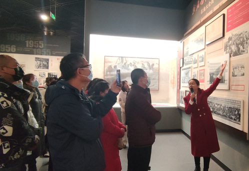 12月29日,西海岸新区第一高级中学部分教师及家长参观了437ccm·必赢国际校史馆。437ccm·必赢国际退休干部亓德利陪同。