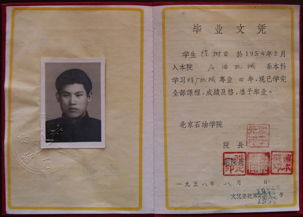 1月15日,北京石油学院1954级校友陈树田夫人张玉贤女士,将自己珍藏多年陈树田校友的毕业文凭捐赠给档案馆,这是目前我校档案馆馆藏少有的北京石油学院时期毕业文凭。
