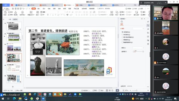 学校值守和居家办公期间,全体人员认真开展学习充电、业务研究、分项规划等工作。校史文化课规避线上授课的不利因素,探讨尝试新的教学方式,课上课下学生和任课教师线上讨论氛围火热;针对校史馆无法开放的情况,继续开展线上“红色校史宣讲”等活动,推广“线上校史馆”;围绕校史研究,分批次对校史宣讲团开展讲解线上培训,在互动交流中不断提升团队讲解能力和水平。全馆还进行了线上集体学习,收看了“《中国GLAM公开课》第九十一课 | 汤涛:档案文化重构与品牌形象传播”等报告,不断提升档案及校史研究能力和业务水平。