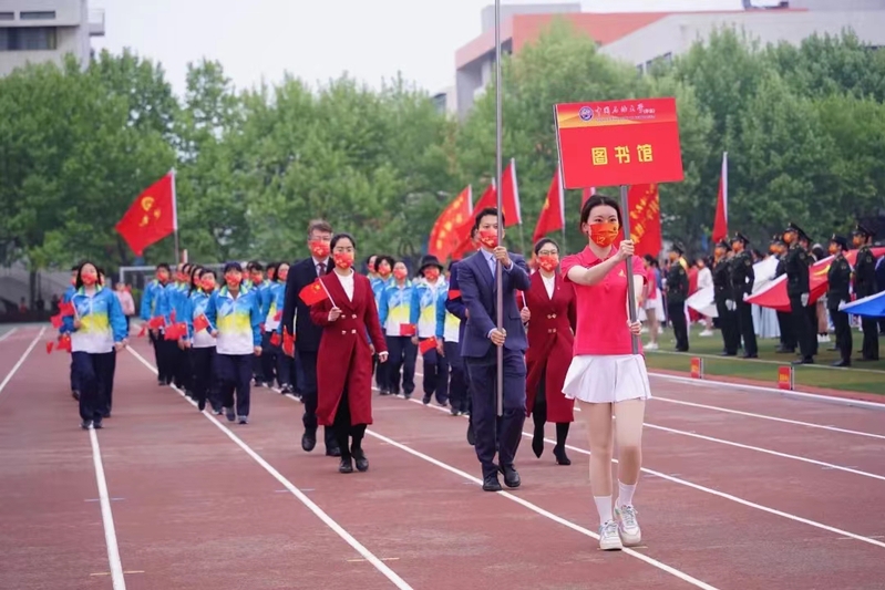此外,张大宇、吴颖昊分别担任图书馆党委方队的旗手和护旗手,走在方队最前列。10名职工参加了方队,成为运动会上参与率最高的单位之一,展现了兰台人的风采。