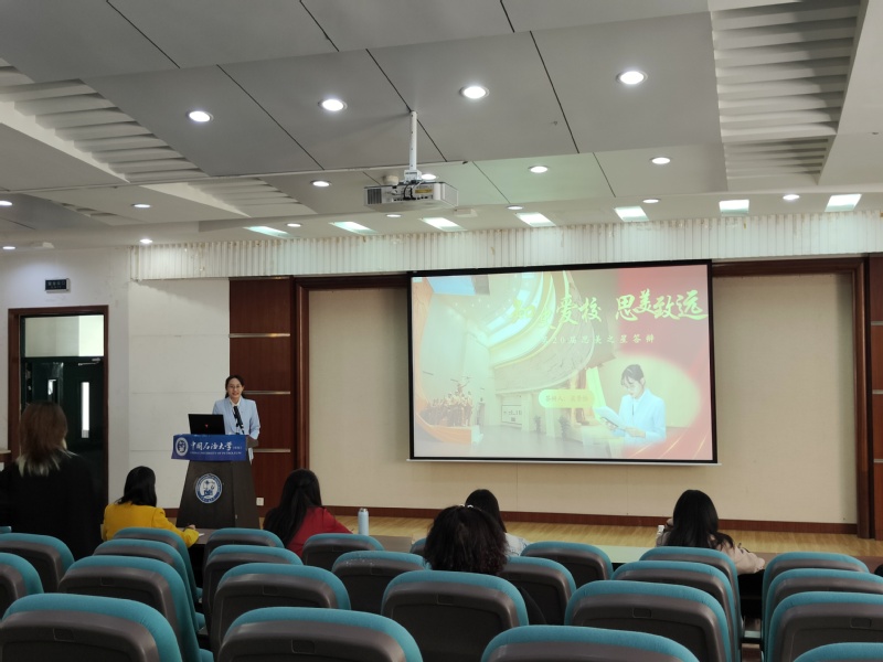 此后的日子里,讲解提升、视频录制、活动开展都有她活跃的身影,累计讲解服务时长150+小时,为1000+人次提供校史讲解服务,见证了她的一路成长。同时,作为校史宣讲团副团长,她也积极投身校史宣讲团的团队建设工作,助力团队建设从0到1。“在工作中,迎接晨光熠熠生辉送走晚霞绚烂多彩已成为常态,你若问我缘何拼尽全力,我会回答,只因爱得深沉。”她说,这也是我们校史宣讲团的初心。梁景怡与团内每一位成员一样,他们都因热爱石大而加入校史宣讲团,因为热爱,他们汇聚一堂,因为热爱,未来他们终将更加优秀,继续用青春的声音讲述石大故事,传承石大精神,追寻石大荣光。