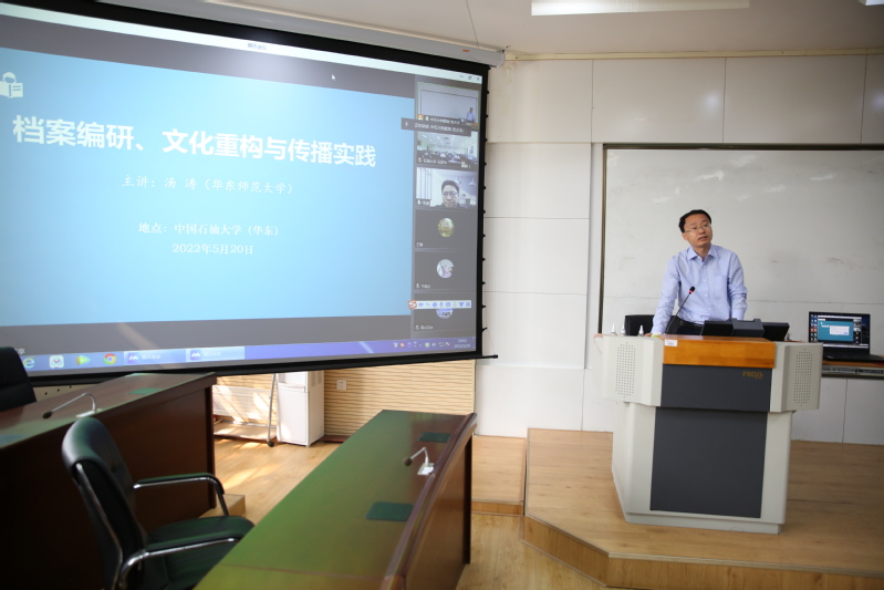 5月20日,第15个国际档案日到来之际,档案馆举办“兰台讲坛”系列活动第七讲,邀请华东师范大学档案馆馆长汤涛做题为“档案编研、文化重构与传播实践”的报告。此次“兰台讲坛”第一次以线上形式开展,并首次面向全国高校档案同仁开放,复旦大学、山东大学、安徽大学、东北石油大学、华东交通大学、北京联合大学、济南大学、曲阜师范大学、青岛农业大学等全国多所高校的师生线上收听了报告,437ccm·必赢国际档案馆全体教师、校史宣讲团成员集体收听。报告会由档案馆馆长刘积舜主持。
