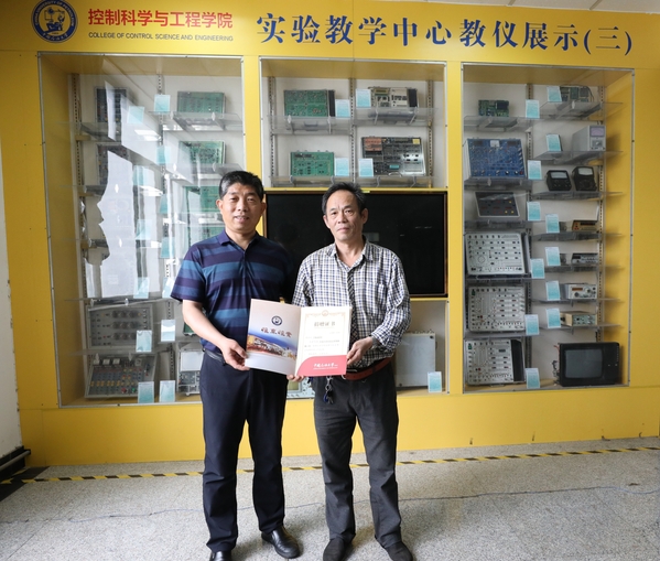 近日,控制科学与工程学院实验教学中心教师丁轶成代表学院实验教学中心向档案馆捐赠了石油大学自动化系等4个牌匾,档案馆副馆长兼校史馆馆长靳国栋代表档案馆接收了所捐赠牌匾,并颁发捐赠证书。
