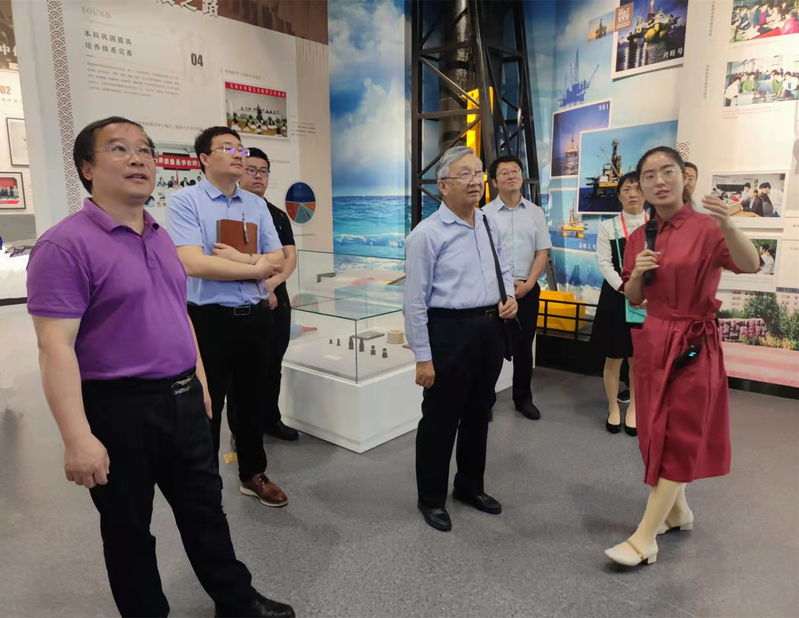 吴院士对沈忠厚院士研发的加长喷嘴牙轮钻头很感兴趣,对沈院士和刘希圣教授研发的超短半径径向水平井技术进行详细了解和交流。