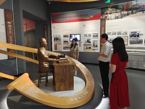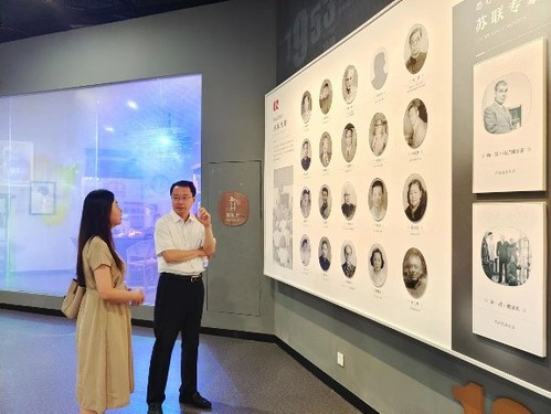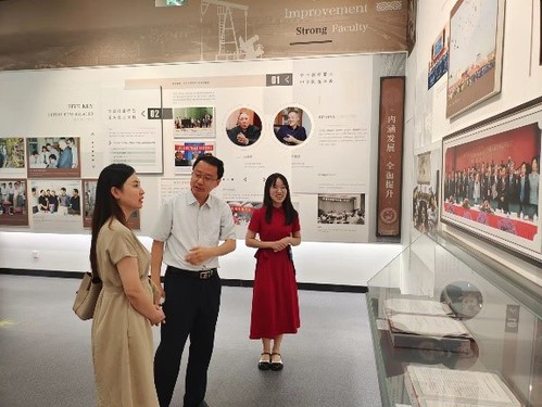 7月11日,《中国科学报》山东记者站站长廖洋在档案馆馆长刘积舜的陪同下,就石油科教、校史上的科学家及科学家精神等选题在校史馆参观采访。校史宣讲团成员、化学化工学院2021级博士生商敬媛负责讲解。