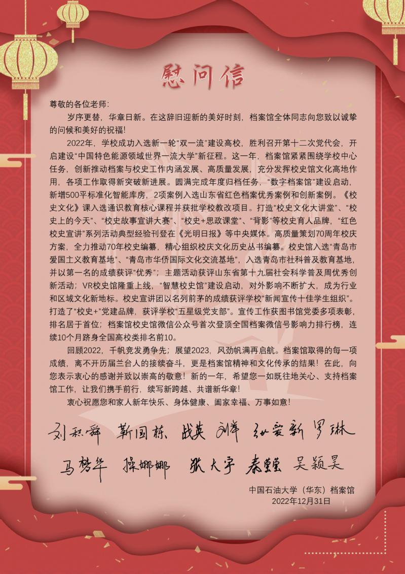 致档案馆老同志们的慰问信