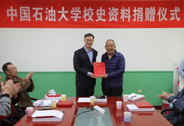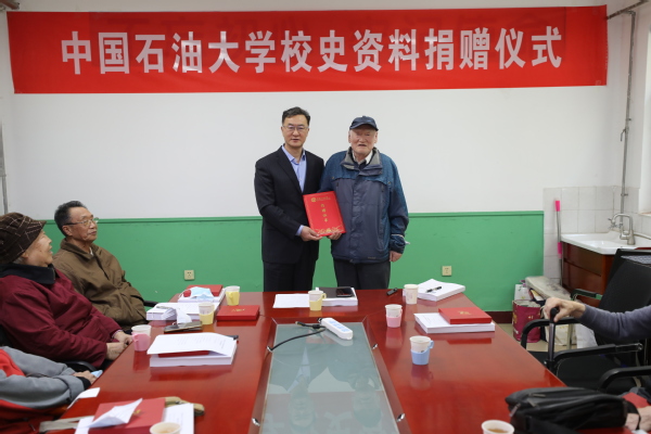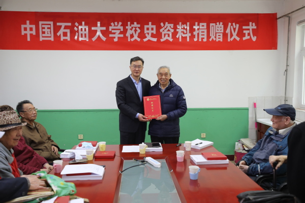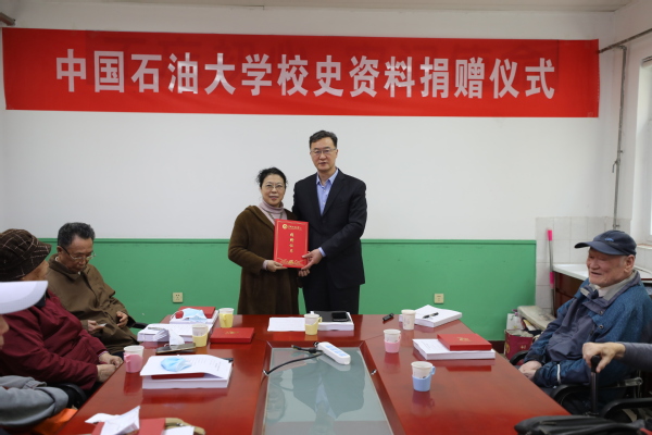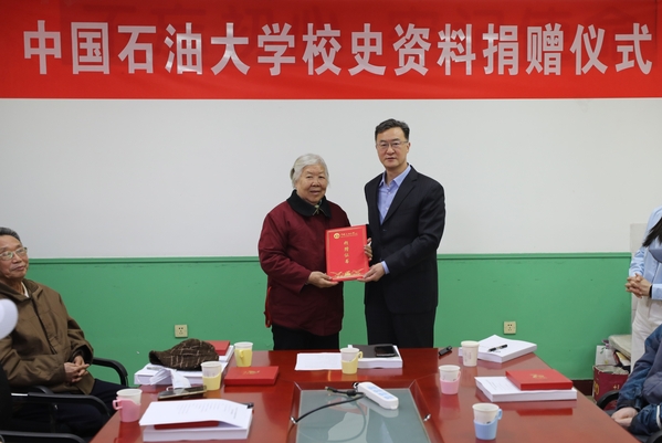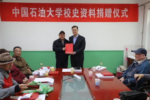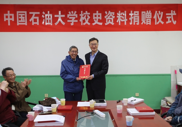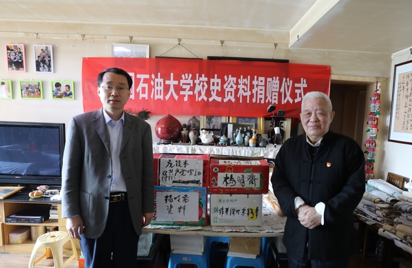 在京期间,档案馆分别拜访了多位老教师、老同志,收集了广饶本《共产党宣言》相关研究资料、杨明斋相关研究资料、著作、聘书、专利证书、荣誉证书和奖章、教材、教案、老照片等,其中包括北京石油学院、华东石油学院等时期的大批珍贵资料和实物,对丰富完善学校档案馆馆藏、校史馆展陈、赓续弘扬学校精神文化具有重要意义和历史价值,是迎接70周年校庆之际老教师、老同志献给学校的珍贵礼物。