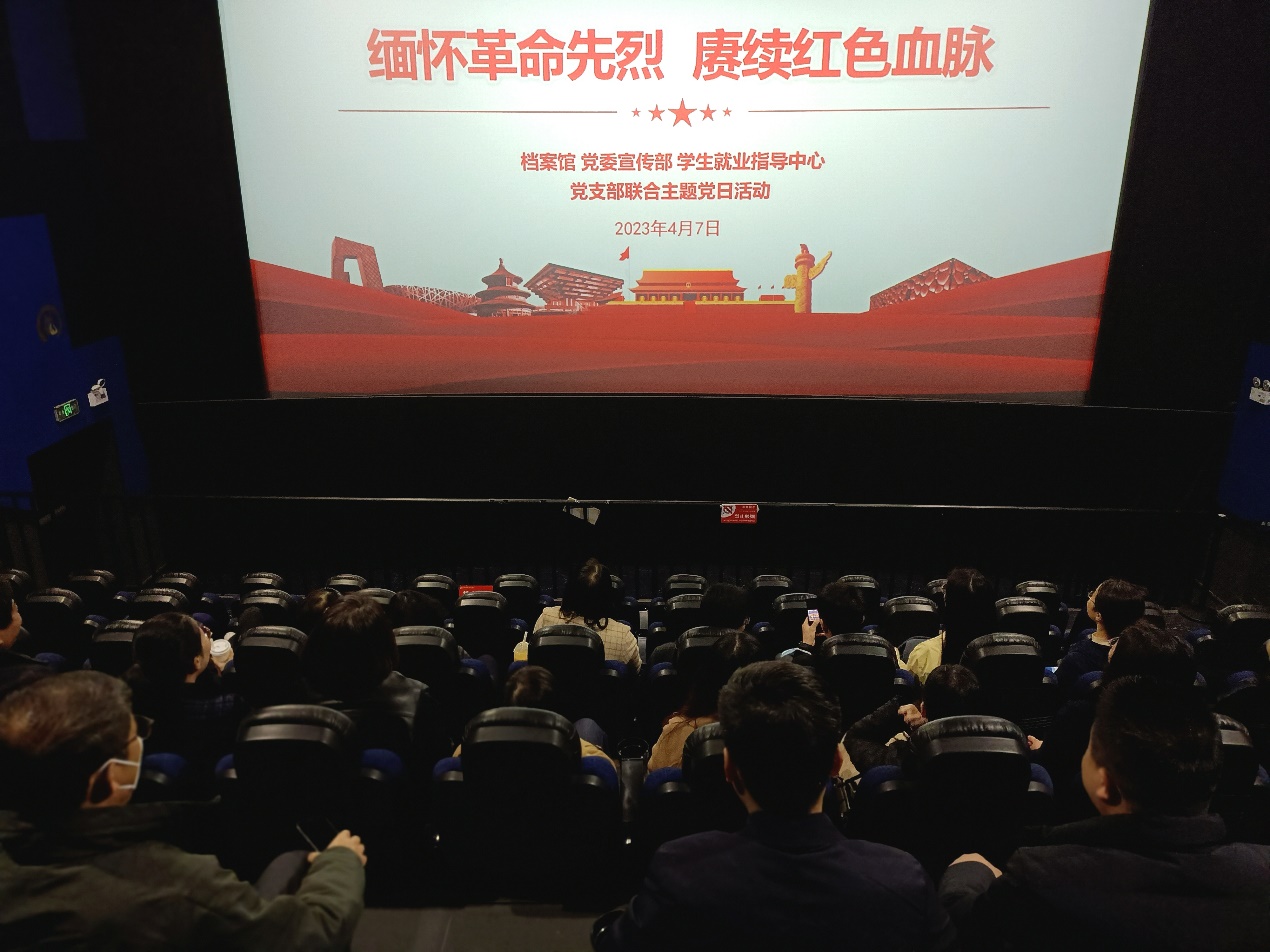为了认真学习贯彻党的二十大精神,缅怀革命先烈,赓续红色血脉,4月7日,档案馆、党委宣传部、学生就业指导中心联合举办主题党日活动,观看红色电影《望道》。