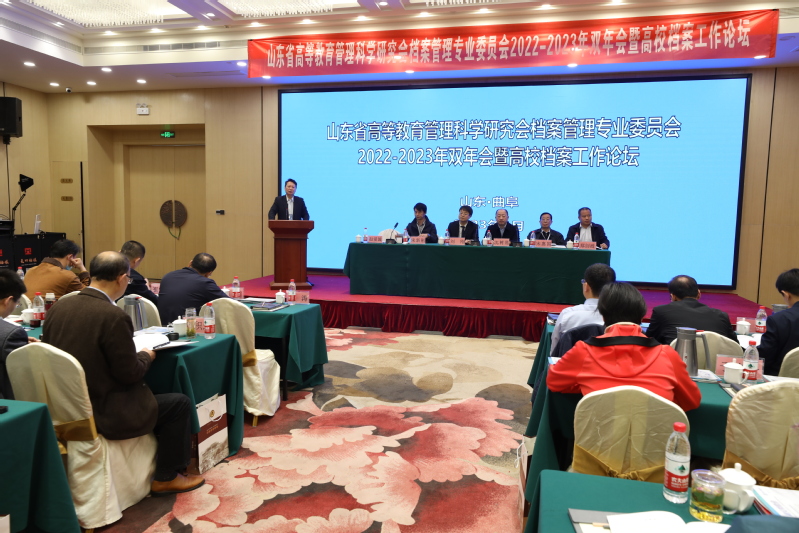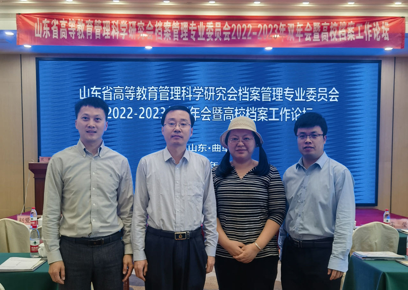 4月25日至26日,由曲阜师范大学承办的山东省高等教育管理科学研究会档案管理专业委员会2022-2023年双年会暨高校档案工作论坛在曲阜举行,山东省教育厅、山东省档案馆、山东省高等教育管理科学研究会、山东省档案学会有关领导,山东高校近百家高校档案馆190余位馆长、档案工作者参加会议。我校档案馆馆长刘积舜一行4人参会。