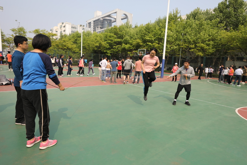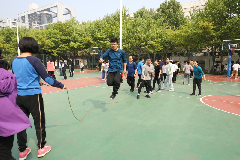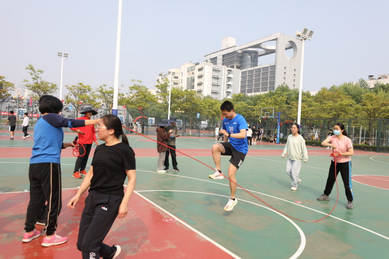 张大宇、马梦华、刘洋、吴颖昊参加8字跳绳趣味项目