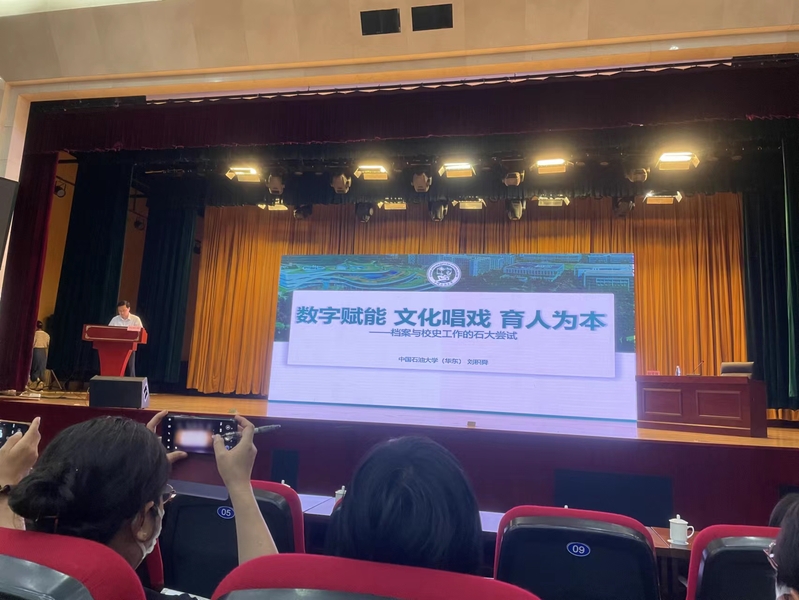 刘积舜在会上作了题为《数字赋能 文化唱戏 育人为本——档案与校史工作的石大尝试》的交流报告,从“情怀集结 职能延伸”的角度介绍了我校在档案管理、校史馆作用发挥和校史文化研究方面所做努力,从“数字赋能 文化唱戏”的视角分享了我校在数字档案馆和智慧校史馆建设方面所做的尝试,并从“历史担当 价值引领”的视阈提出了我校在档案与校史工作中的体会:平台是基础,资源是保障,队伍是关键,情怀是力量。大会为华东地区(六省一市)高校之间学习交流、相互促进搭建了良好平台,对推进档案治理体系和治理能力现代化,构建高校档案工作新格局起到了促进作用。