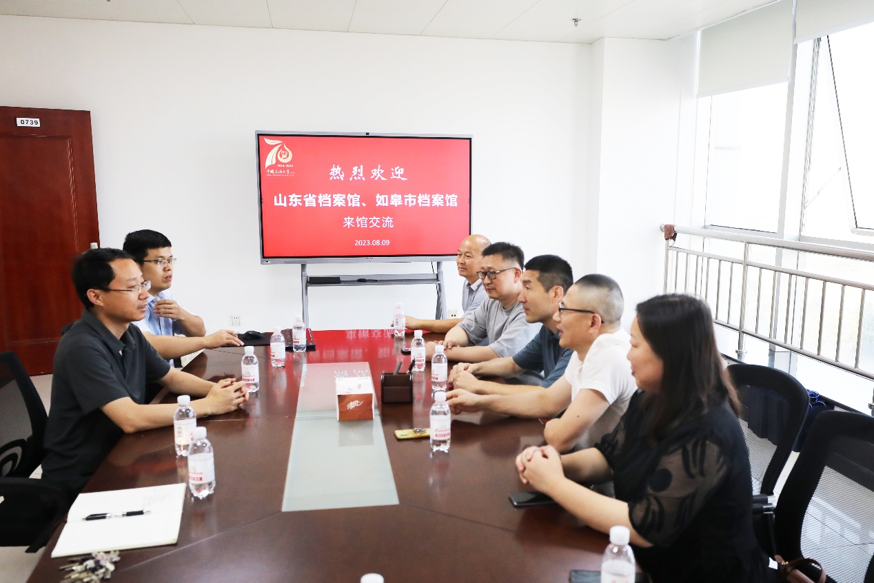 8月9日,山东省档案馆档案保护处副处长明继国,江苏省如皋市档案馆馆长谢晓明,副馆长陈永圣、陈红,江苏省档案馆如皋电影史料馆和江苏华夏电影胶片修复技术有限公司负责人等来学校档案馆、校史馆调研交流。档案馆馆长刘积舜会见明继国一行并陪同调研参观。