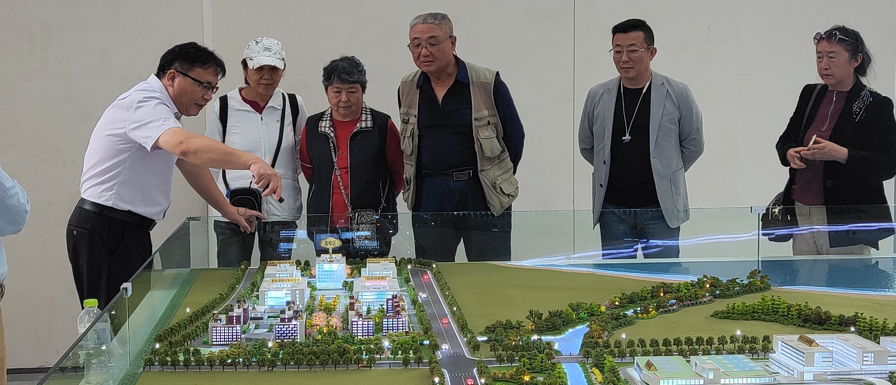 校长助理、合作发展处处长、服务山东办公室主任王效美等在子元广场与闫胜利一行交流(靳国栋摄影)
