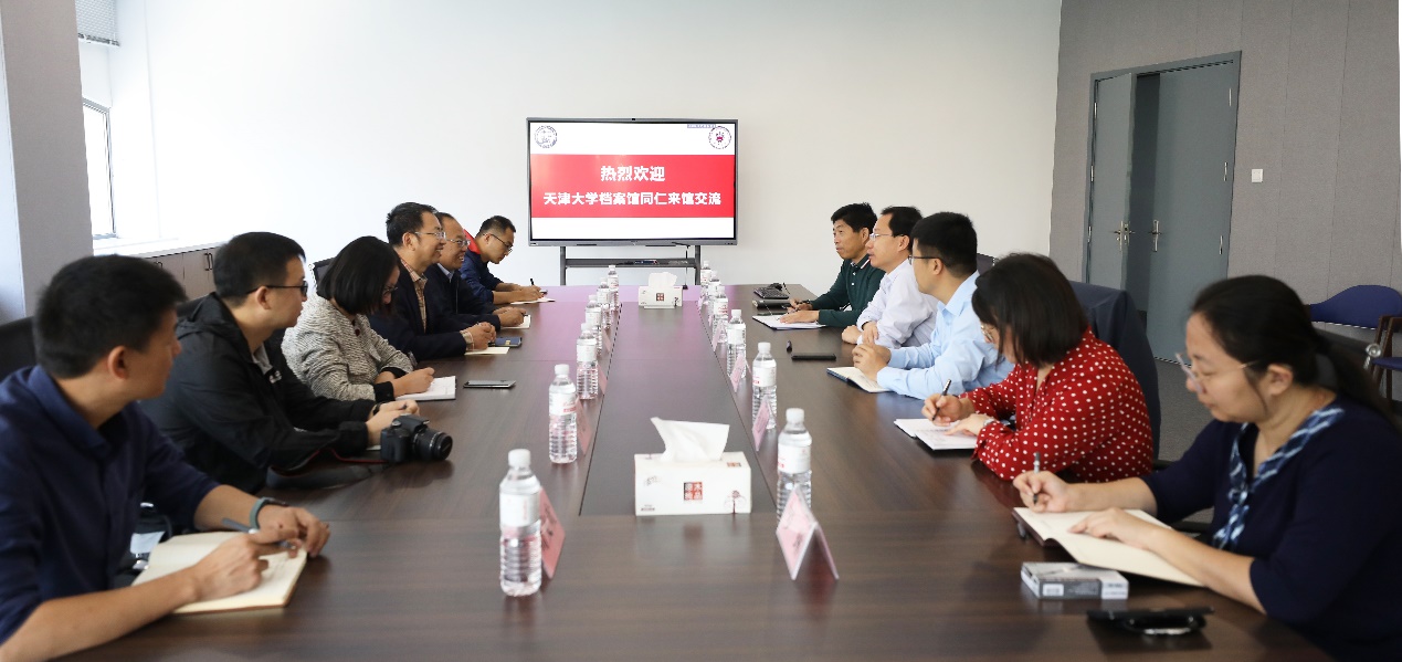 10月11日,天津大学档案馆馆长韩宝志带队来我校档案馆进行工作交流,学校档案馆馆长刘积舜,档案馆副馆长、校史馆馆长靳国栋等会见韩宝志一行。