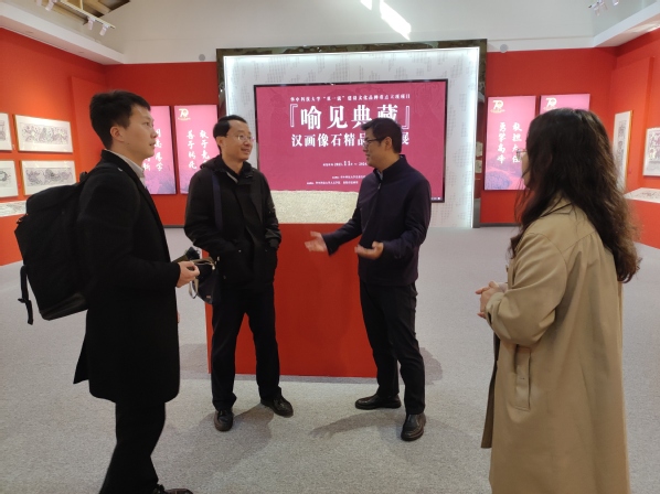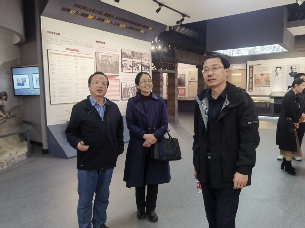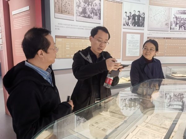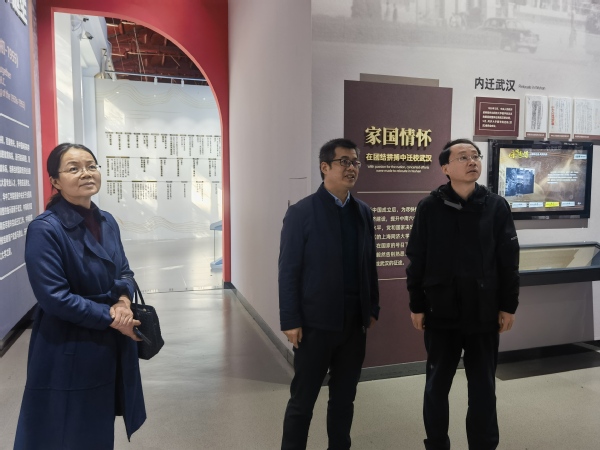 在中国地质大学(武汉)图书档案与文博部,帅斌带领刘积舜一行参观了校史馆,参观过程中,帅斌从校史馆宏观策划、主雕塑设计理念、实物展陈、场景复原、如何凸显地大特色等方面,详细讲解了校史馆中门厅、编年体展厅、大师专题展厅、登山专题展厅等展陈理念、展陈形式和展陈有关内容,双方就行业特色高校校史馆建设中的有关共性问题进行了交流。