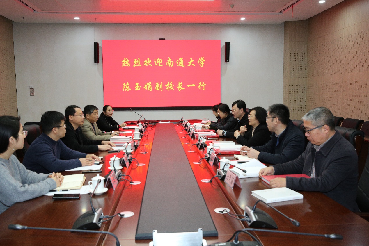 12月20日,南通大学副校长陈玉娟带领档案馆、图书馆、党委宣传部、国有资产管理处负责人来我校就校史馆建设、校史编写、知识产权服务等工作调研。